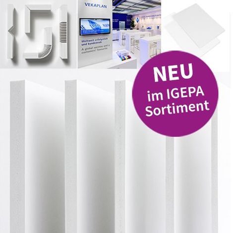 Neu im IGEPA Sortiment ist die weiße, beidseitig mit Schutzfolie versehene PVC-Integralschaumplatte Vekaplan S...