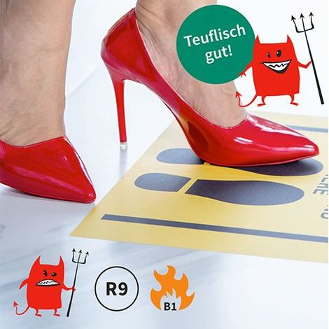 Die Folie weist eine fein matte Oberfläche auf, erfüllt dennoch vollständig die anspruchsvolle Rutschhemmungsklasse R9. Hohe „Anti-Slip“-Leistung und gute Durchsicht bei fein matter Oberfläche verbinden Funktionalität und klar erkennbare Werbebotschaft in einzigartiger Weise. Das hervorragende Preis- Leistungsverhältnis ermöglicht ebenfalls den Einsatz als herkömmliches mattes Laminat, auch wenn mal keine Rutschklasse erforderlich ist. Das gibt Sicherheit, spart Zeit, Platz und Kosten!