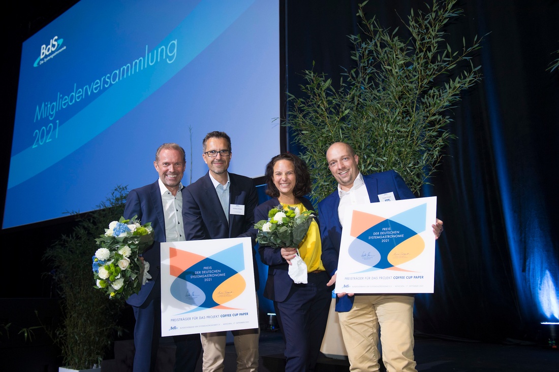 Aus über 30 eingereichten und vorgeschlagenen Beiträgen wählte die Jury drei Nominierte für die Endrunde des Preises der Deutschen Systemgastronomie aus. Das Projekt „CoffeeCup Paper“ setzte sich letztlich gegen Beiträge von McDonald’s Deutschland LLC und der npdgroup Deutschland GmbH durch. Die Preisverleihung fand 17. September 2021 in München im Rahmen des offenen Teils der BdS-Mitgliederversammlung statt. Frank Bierkämper, Mitglied des BdS-Präsidiums und Franchisenehmer bei Burger King Deutschland, der die Laudatio hielt und den Gewinner kürte, lobte im Namen der Jury das Projekt „CoffeeCup Paper“ als echte Pionierarbeit, welche sich positiv auf das Image der Systemgastronomie auswirke und ein wertvoller Branchenbeitrag zum Thema Nachhaltigkeit und Umweltschutz sei.