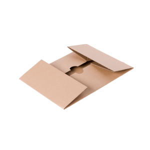 Versandtasche aus brauner Vollpappe mit Zungensteckverschluss