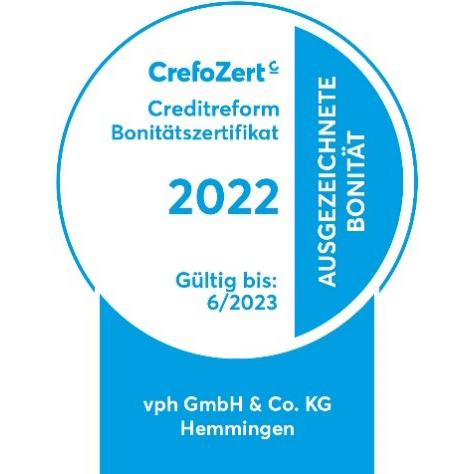 Im Jahr 2022 wurde die vph GmbH & Co. KG für ihre hervorragende Bonität ausgezeichnet! Bereits seit ...